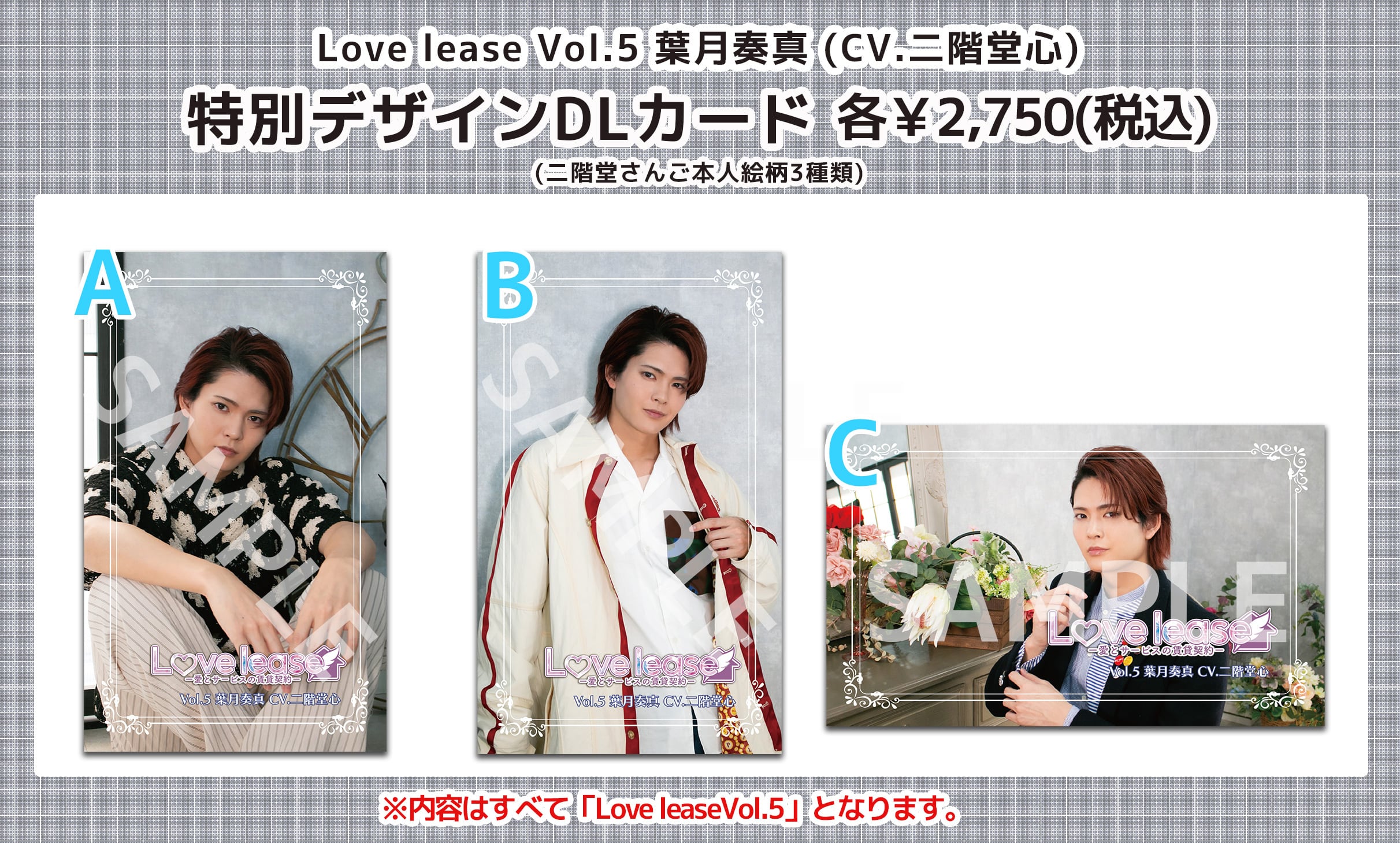 ※キャストコメント音源のお渡しは「Love lease Vol.5」と同じダウンロードサービスを使用させていただきます。
